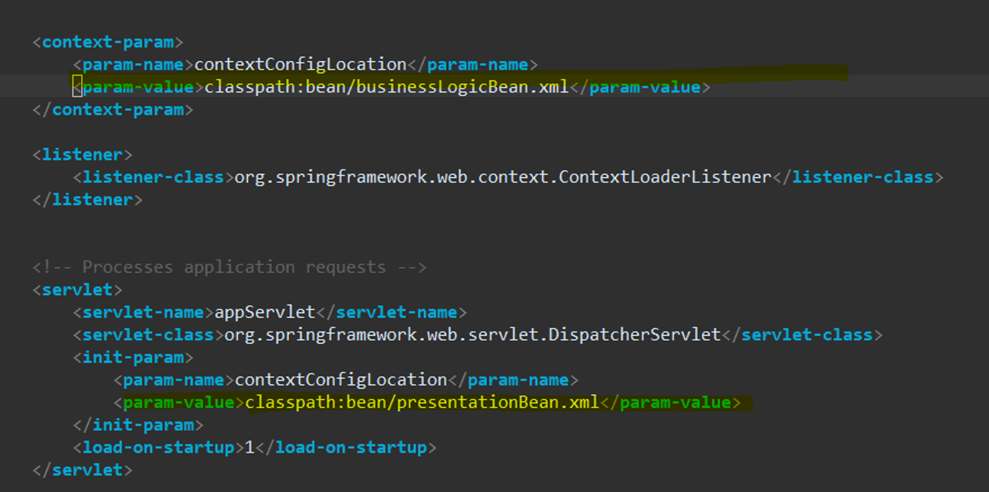 - businessLogicBean.xml 초기화 한 후, presentationBean.xml을 생성해야 한다.