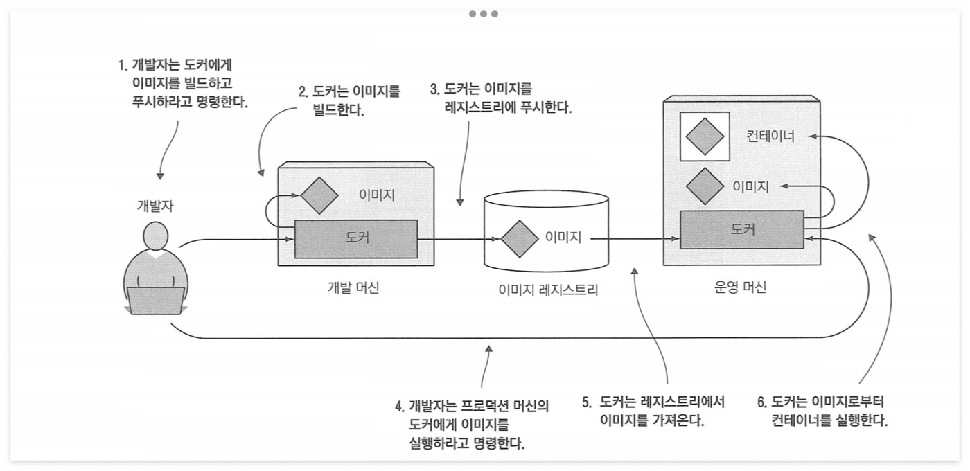 쿠버네티스에서 애플리케이션을 실행하려면 먼저 애플리케이션을 하나 이상의 컨테이너 이미지로 패키징하고 해당 이미지를 이미지 레지스트리로 푸시한 다음 쿠버네티스 API 서버에 애플리케이션 디스크립션을 게시해야 한다.